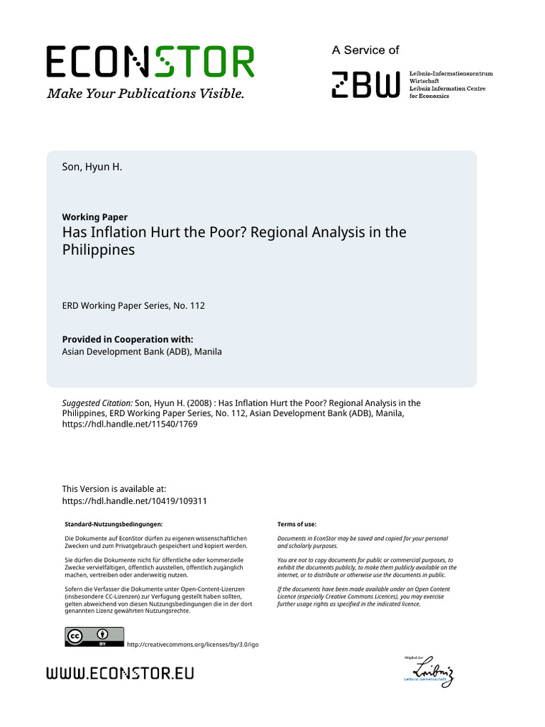 Suggested Citation: Son, Hyun H. (2008) : Has Inflation Hurt the Poor? Regional Analysis in the
