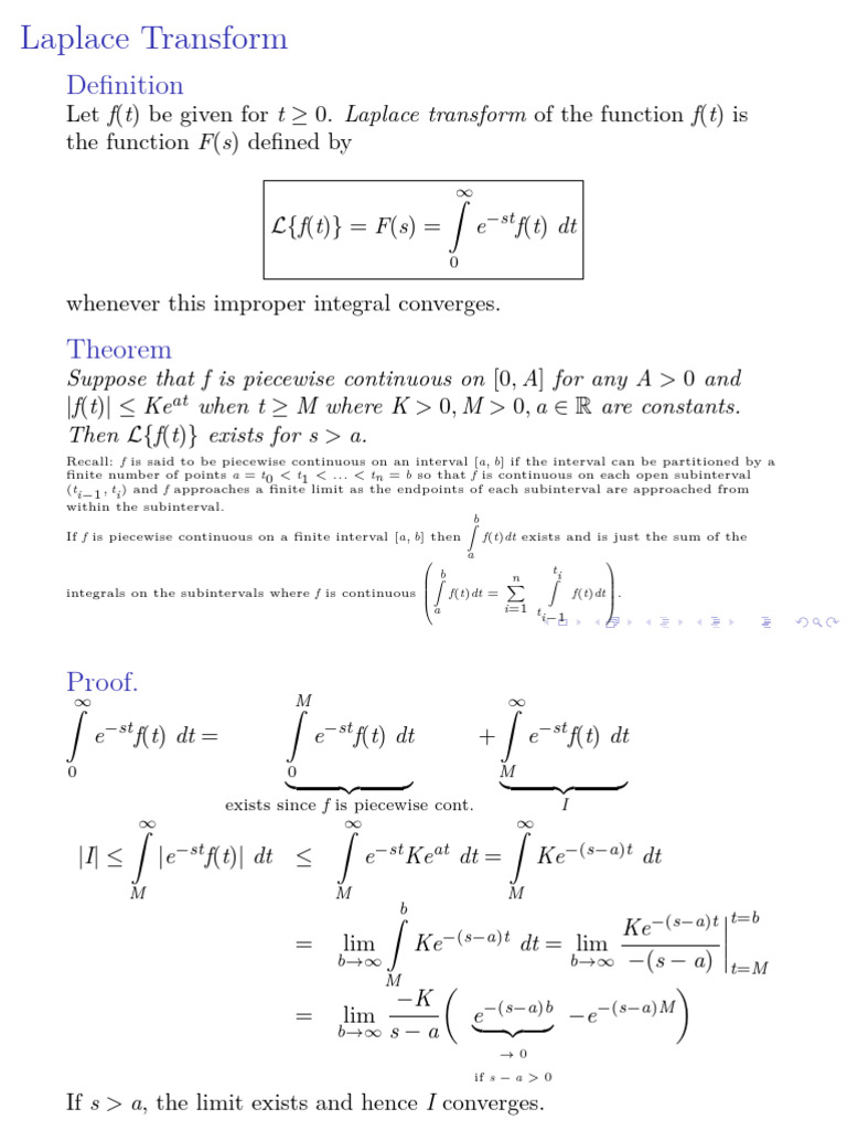 proof: L{uc (t)} = e−st uc (t) dt = e−st uc (t) dt + e−st uc (t) dt