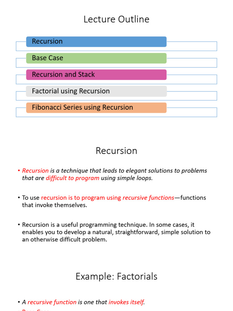 • Recursion is a useful programming technique. In some cases, it