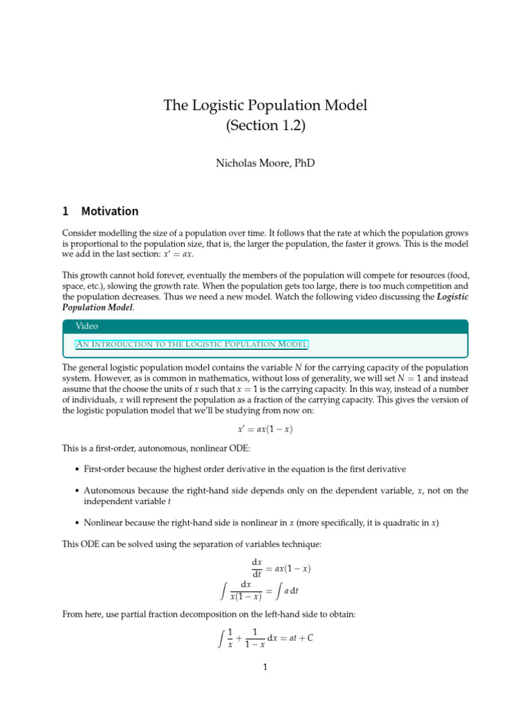 the population decreases. Thus we need a new model. Watch the following video discussing the Logistic