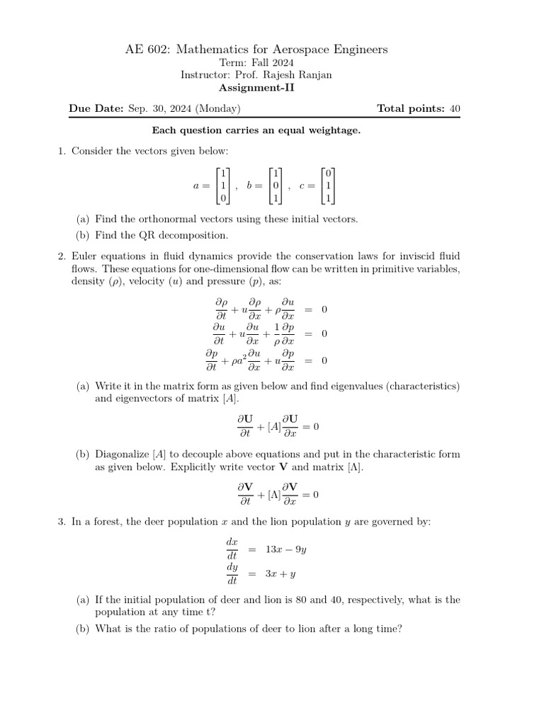 AE 602: Mathematics for Aerospace Engineers