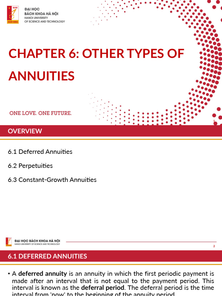 • A deferred annuity is an annuity in which the first periodic payment is