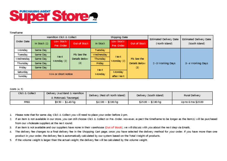 Delivery (Rest of North Island) Delivery (South Island) Rural Delivery