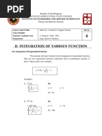 Activity Exercise 4: NTEGRATION OF EXPONENTIAL & HYPERBOLIC FUNCTIONS