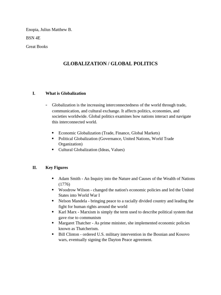 societies worldwide. Global politics examines how nations interact and navigate