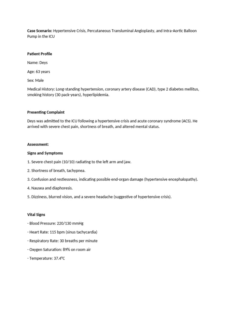Deys was admitted to the ICU following a hypertensive crisis and acute coronary syndrome (ACS). He