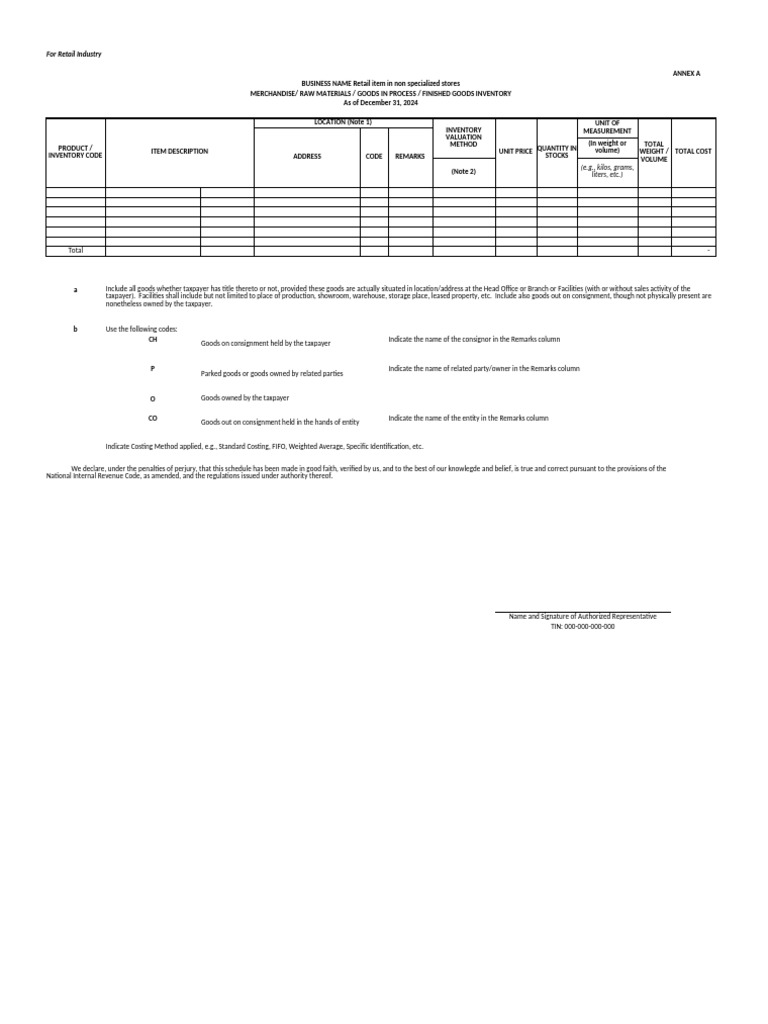 a Include all goods whether taxpayer has title thereto or not, provided these goods are actually situated in location/address at the Head Office or Branch or Facilities (with or without sales activity of the
