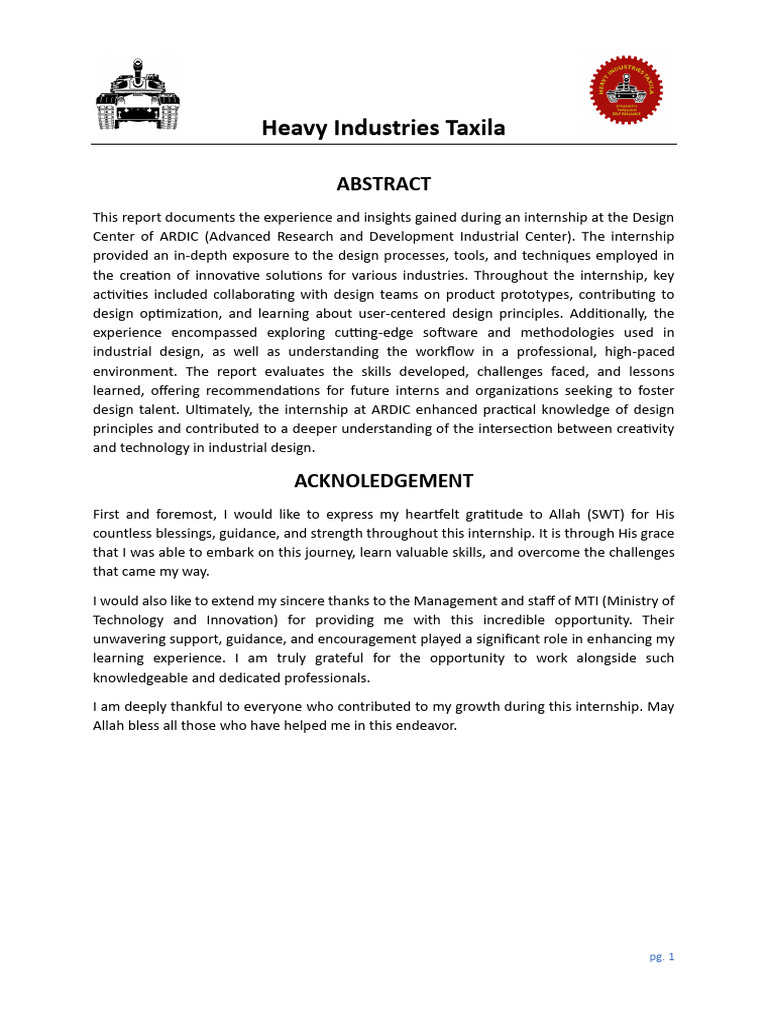 This report documents the experience and insights gained during an internship at the Design