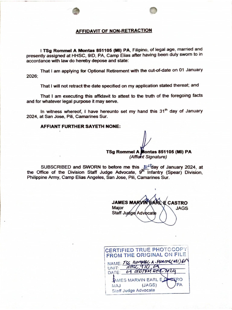 1 TSg Rommel A Montas 851105 (Mi) PA, Filipino, of legal age, married and