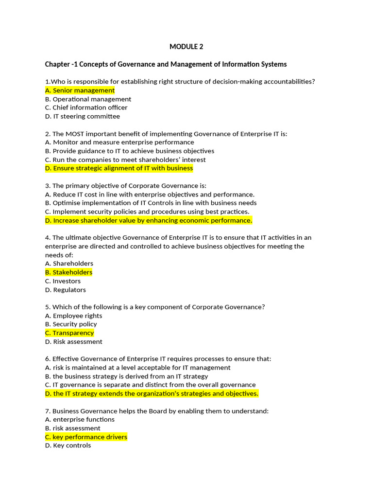 2. The MOST important benefit of implementing Governance of Enterprise IT is: