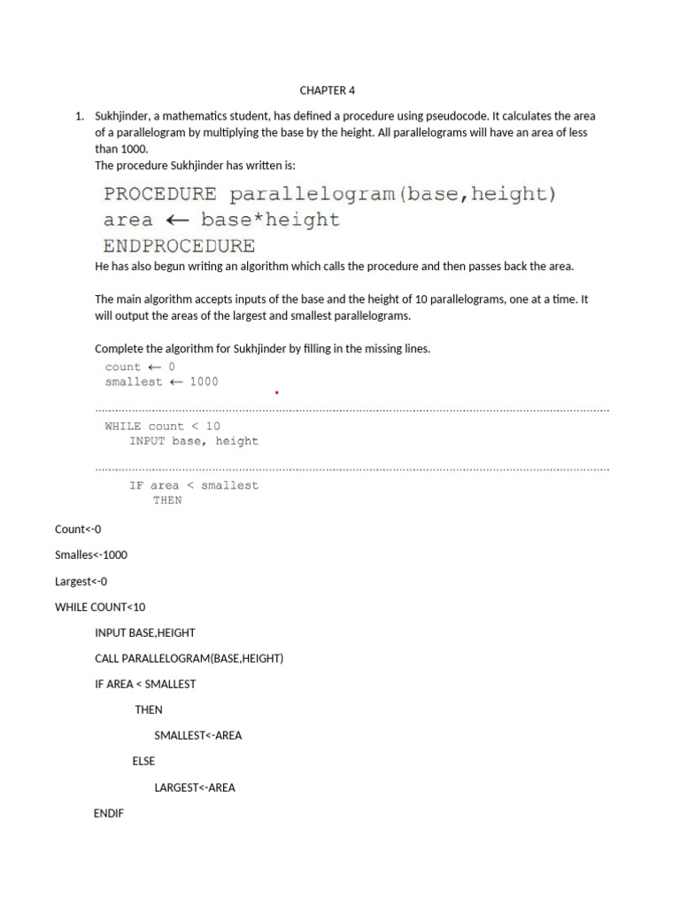 1. Sukhjinder, a mathematics student, has defined a procedure using pseudocode. It calculates the area