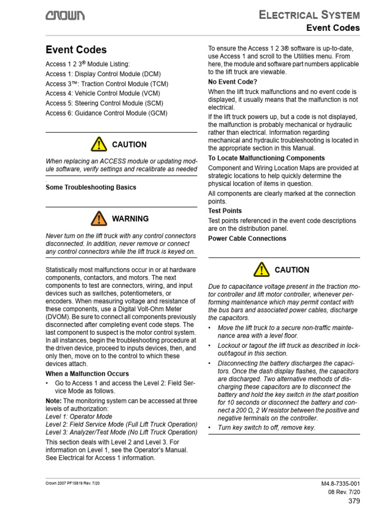 Access 4: Vehicle Control Module (VCM) When the lift truck malfunctions and no event code is
