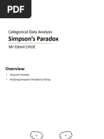 The female golfers have the highest percentage saying the greens are too fast: 40%. b. 10% of the women think the greens are too fast. 20% of the men think the greens are too fast. So, for the low handicappers, the men have a higher percentage who think the greens are too fast. 43% of the woman think the greens are too fast. 50% of the men think the greens are too fast. So, for the high handicappers, the men have a higher percentage who think the greens are too fast. This is an example of Simpson's Paradox. At each handicap level a smaller percentage of the women think the greens are too fast. But, when the crosstabulations are aggregated, the result is reversed and we find a higher percentage of women who think the greens are too fast. The hidden variable explaining the reversal is handicap level. Fewer people with low handicaps think the greens are too fast, and there are more men with low handicaps than women.