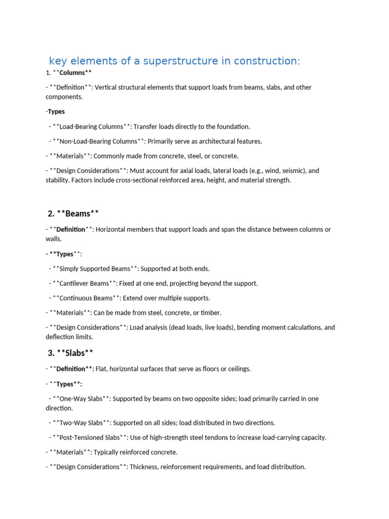 integrity, durability, and aesthetic quality in superstructure works. Always refer to specific project