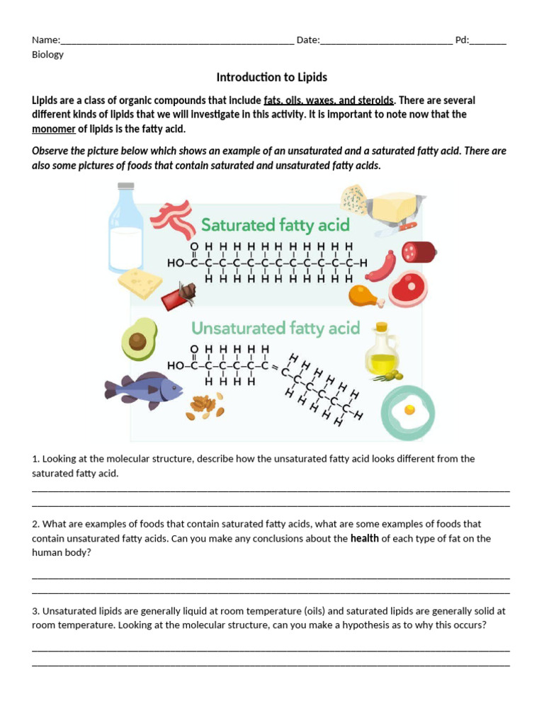 also some pictures of foods that contain saturated and unsaturated fatty acids.