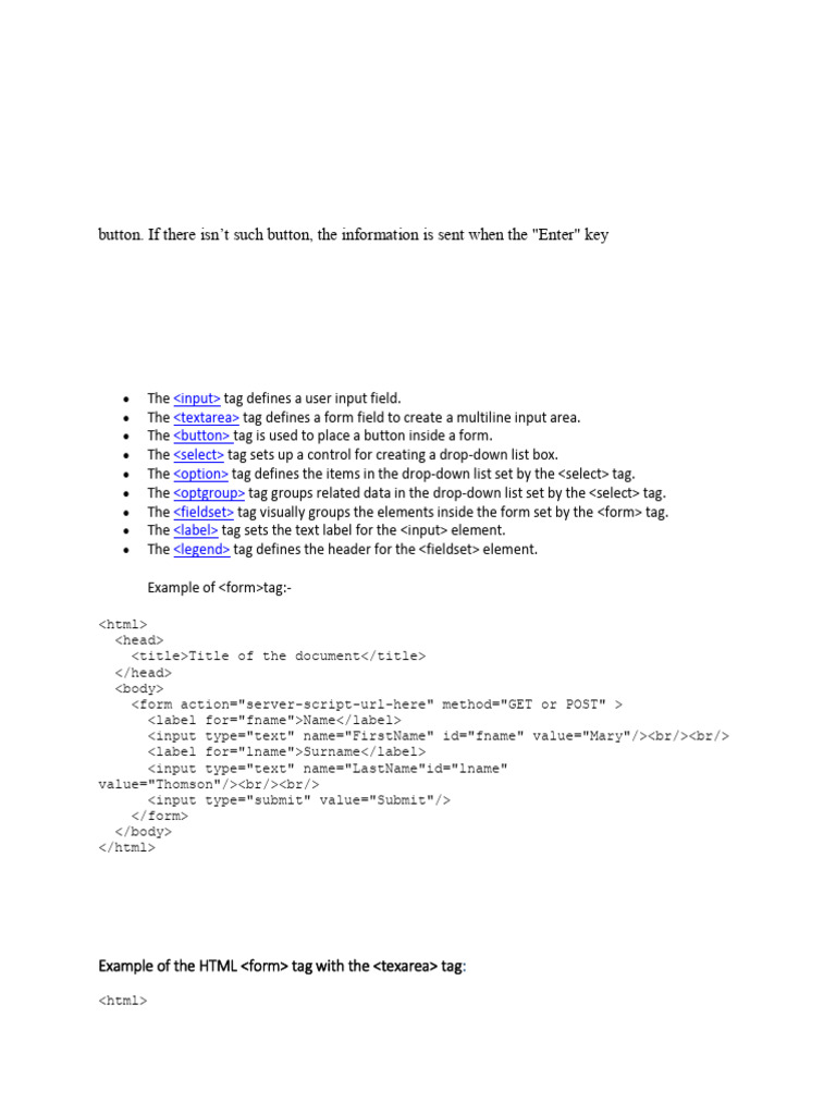 The <form> tag is used to add HTML forms to the web page for user input. Forms are used to