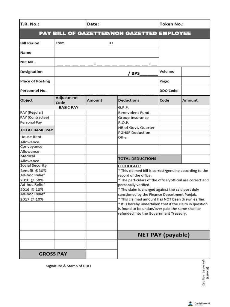 PAY BILL OF GAZETTED/NON GAZETTED EMPLOYEE