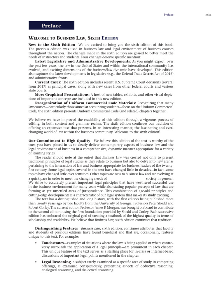 scholarship and readability. We believe that Business Law, sixth edition continues that tradition.