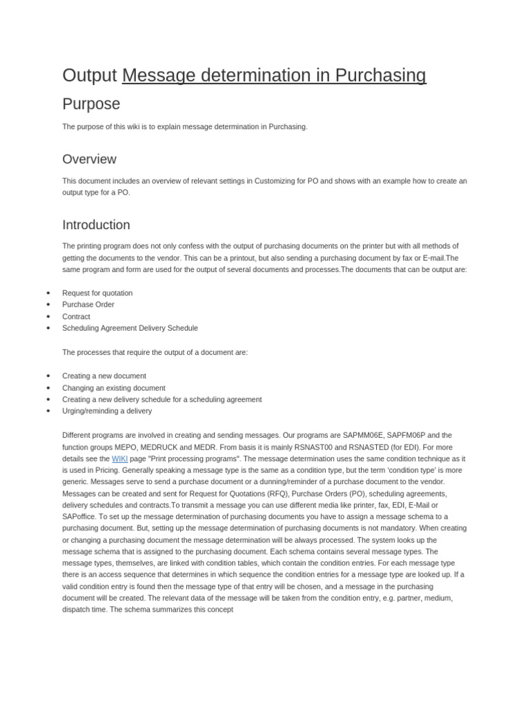 The purpose of this wiki is to explain message determination in Purchasing.