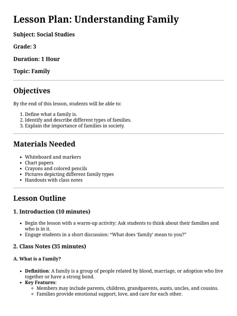 Begin the lesson with a warm-up activity: Ask students to think about their families and