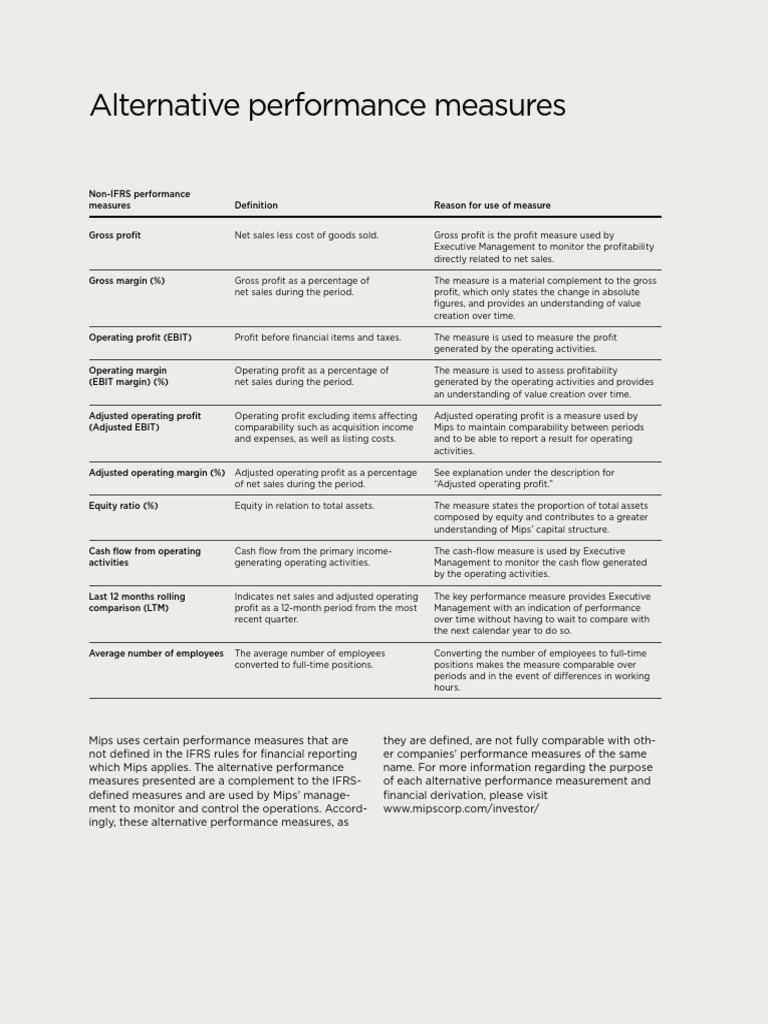 defined measures and are used by Mips’ manage- financial derivation, please visit