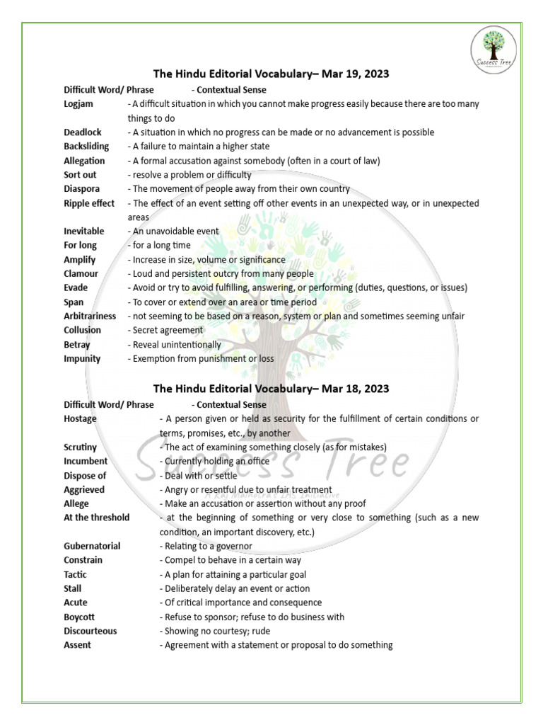 The Hindu Editorial Vocabulary– Mar 19, 2023