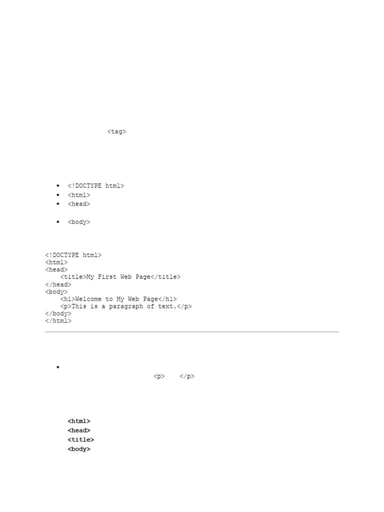 • Tags: Tags are used to mark up the content. Most tags come in pairs (an opening tag and