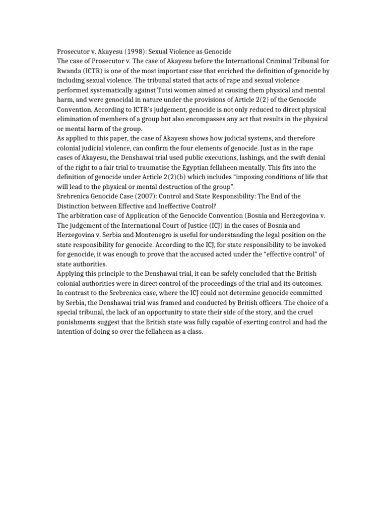 cases of Akayesu, the Denshawai trial used public executions, lashings, and the swift denial