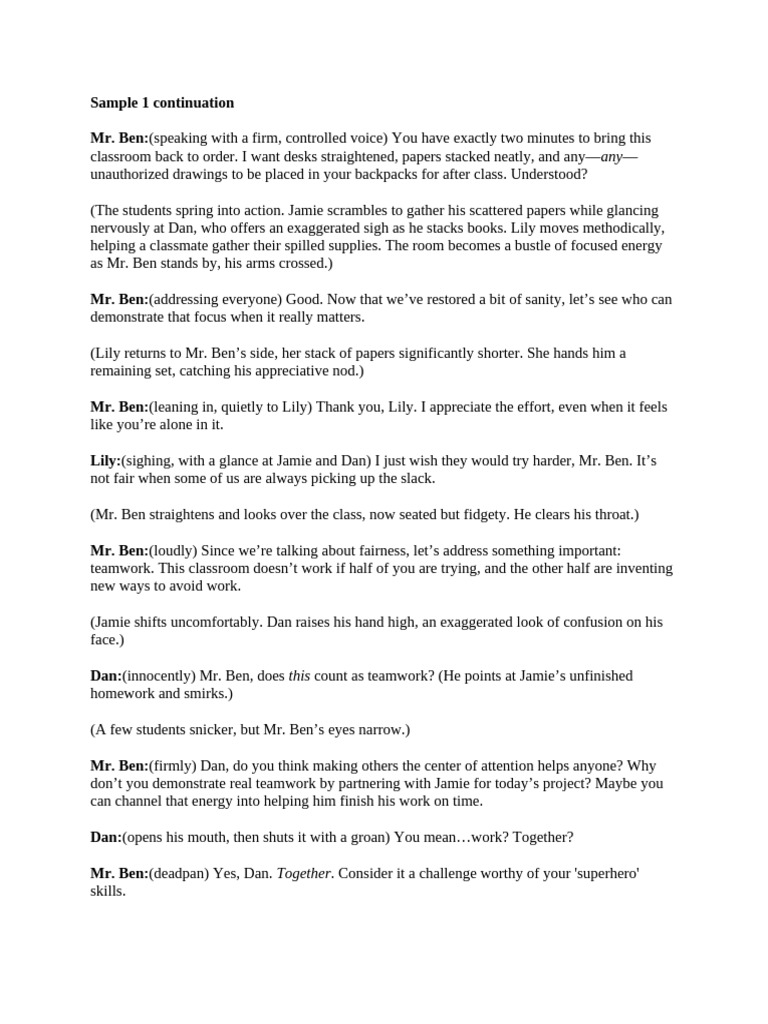 Mr. Ben:(nods) Good. Now, let’s see if the two of you can put that into practice. For the next