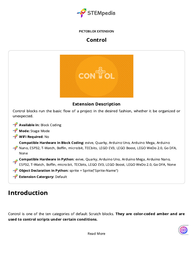 Control is one of the ten categories of default Scratch blocks. They are color-coded amber and are