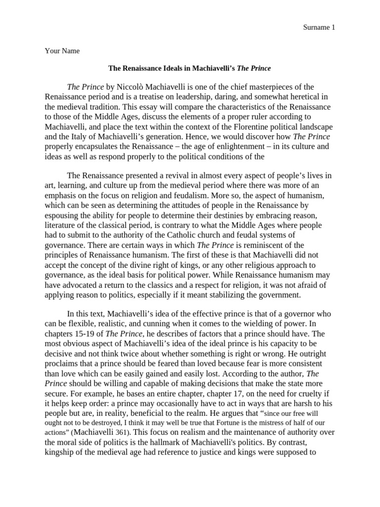The Renaissance Ideals in Machiavelli’s The Prince