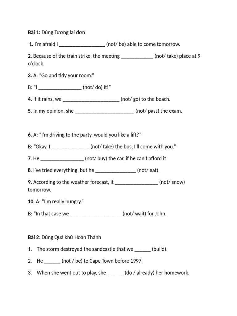 Bài 2: Dùng Quá khứ Hoàn Thành