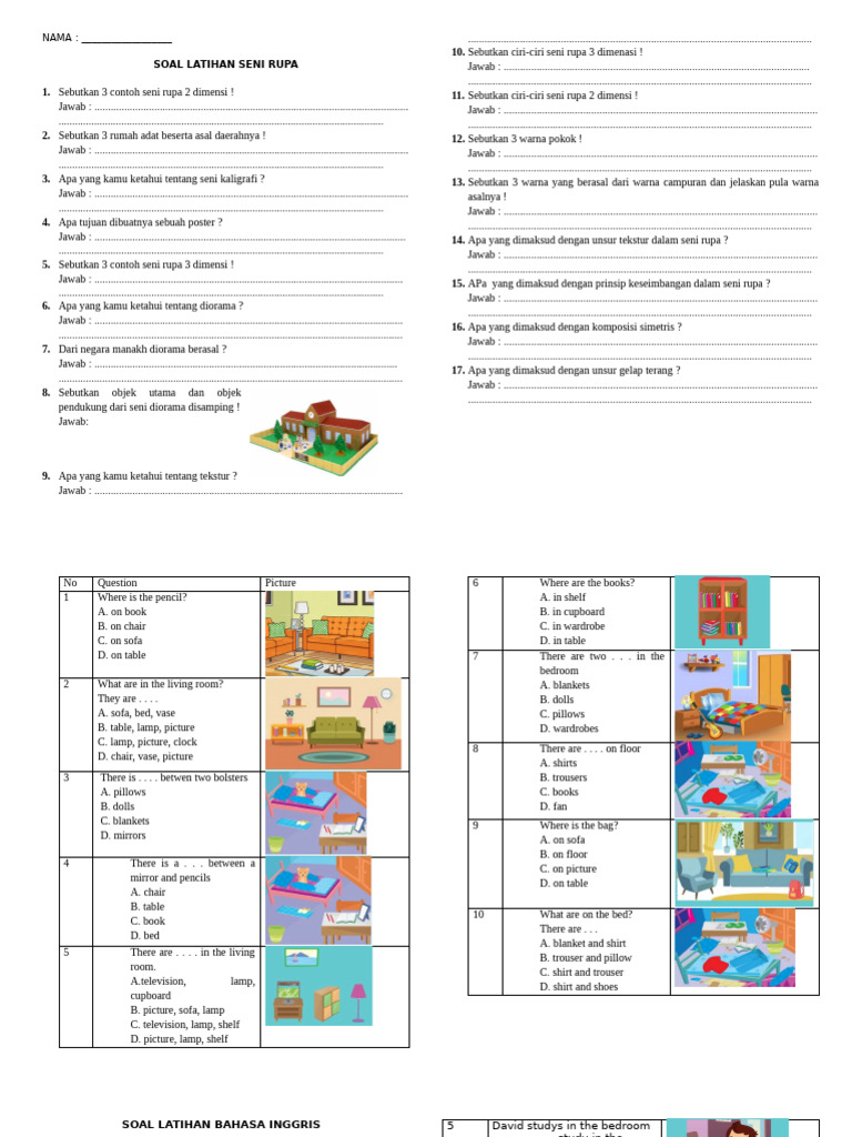 SOAL LATIHAN BAHASA INGGRIS 5 David studys in the bedroom