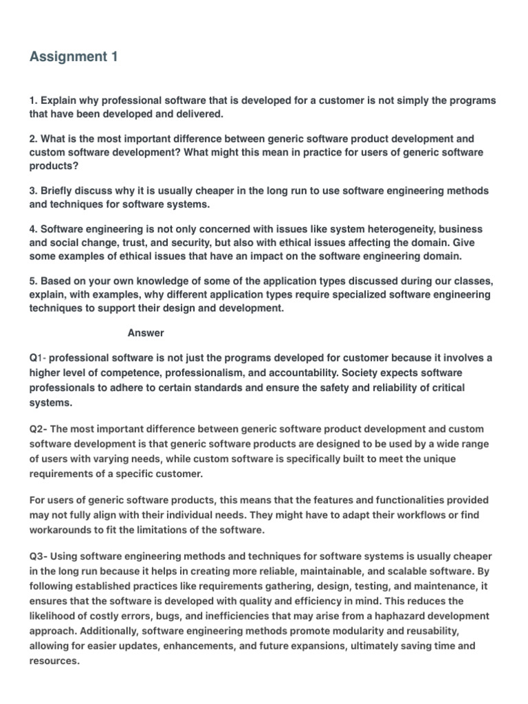Q1- professional software is not just the programs developed for customer because it involves a
