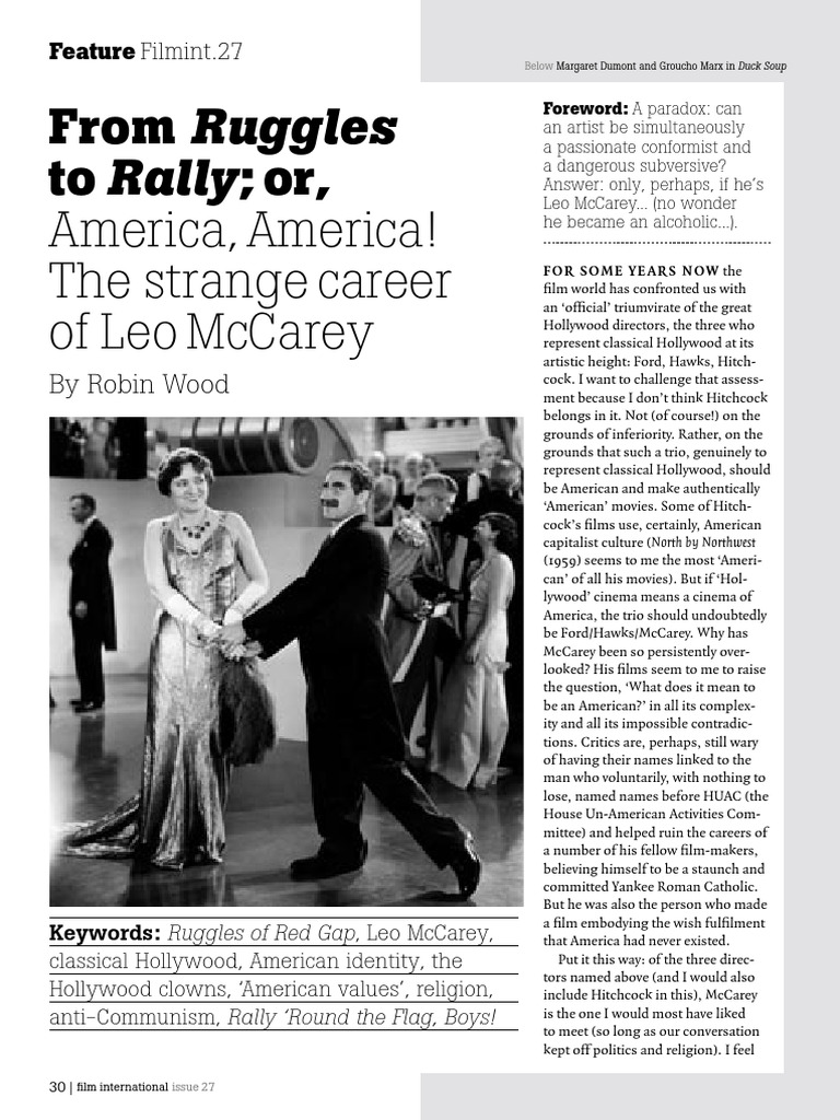 McCarey’s apparent conformity with ‘American values’ the greatest, if largely unacknowledged, in the history of