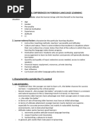 attitudes and beliefs; age and L2 stage; learning • Affective issues (anxiety, motivation, beliefs, and
