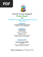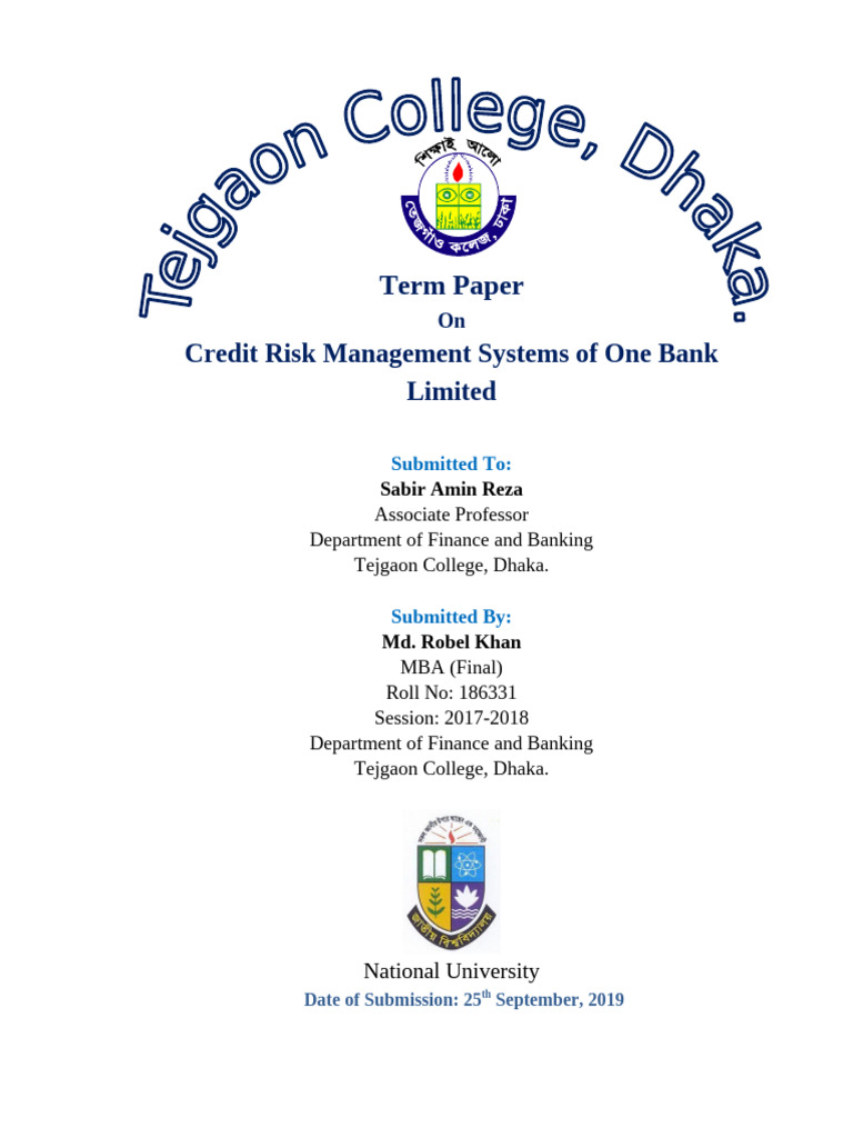 Subject: Submission of Term paper on “Credit Risk Management Systems of One