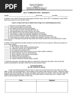 Panuto: Basahin at unawain ang mga [Link] ang titik ng tamang sagot. A. Directions: Identify the correct point of view in each sentence. Tell