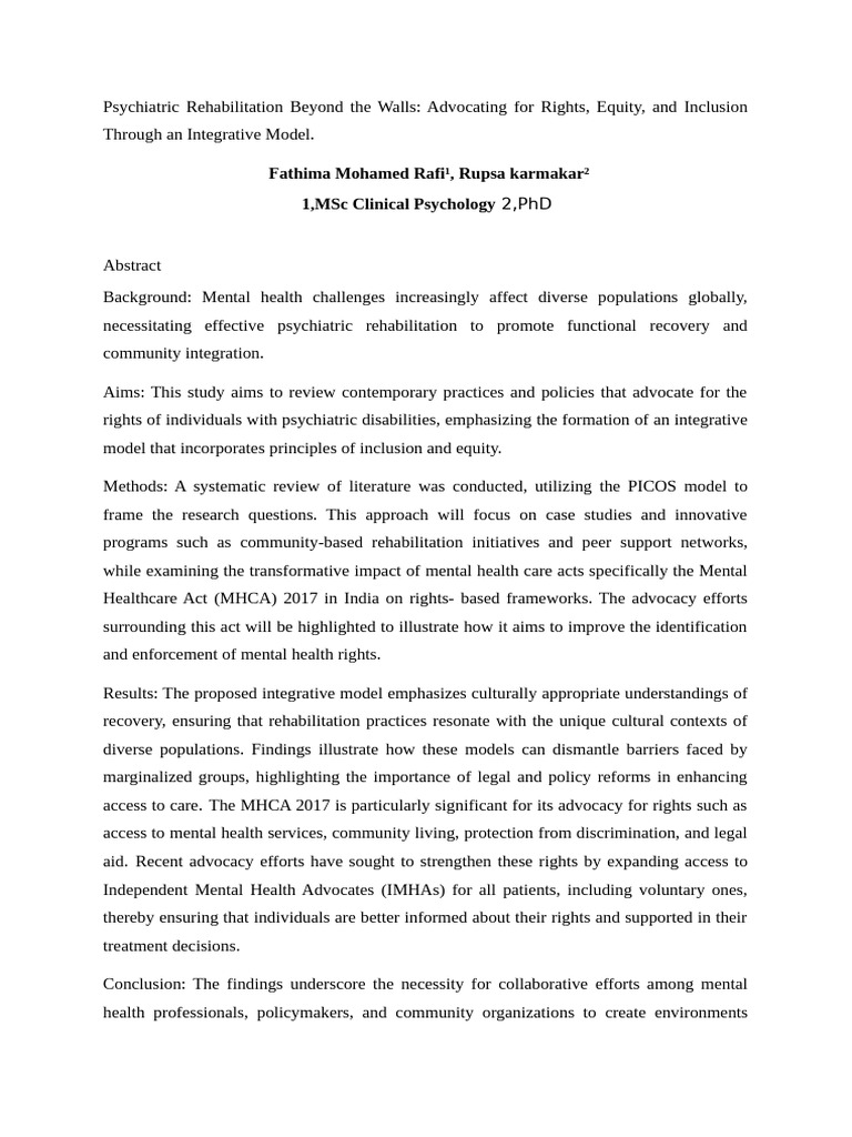 rights of individuals with psychiatric disabilities, emphasizing the formation of an integrative