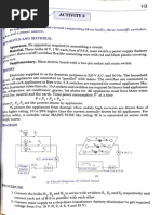 The document outlines the assembly of a household circuit with three bulbs and switches, detailing the components needed and their connections. It explains the principles of electrical circuits, including the importance of fuses for safety and the parallel connection of appliances. Additionally, it describes procedures for measuring potential drop and ensuring proper circuit functionality through correct component arrangement.
