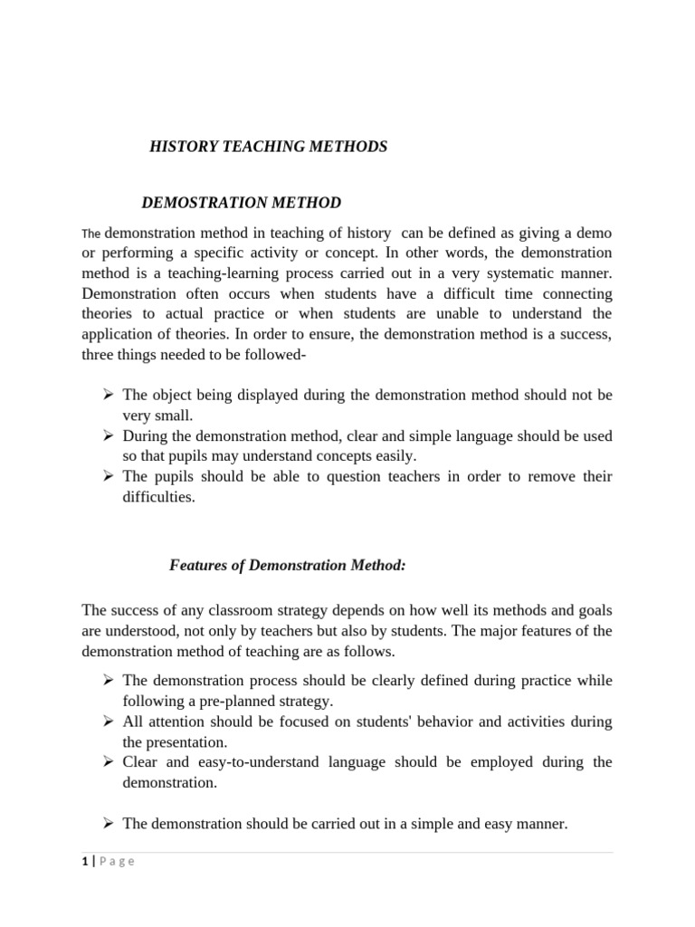 There are 6 steps in the demonstration method used by teachers to teach history,
