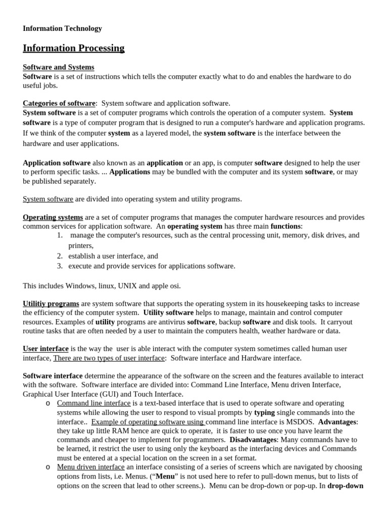 with the software. Software interface are divided into: Command Line Interface, Menu driven Interface,