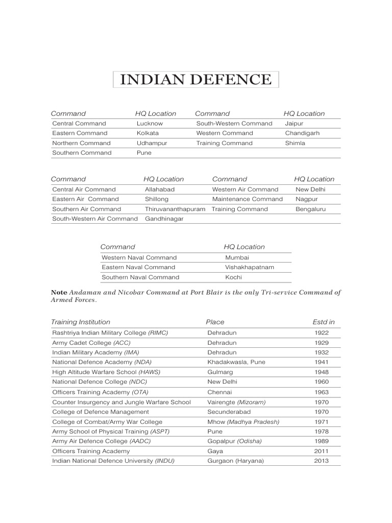 Note Andaman and Nicobar Command at Port Blair is the only Tri-service Command of