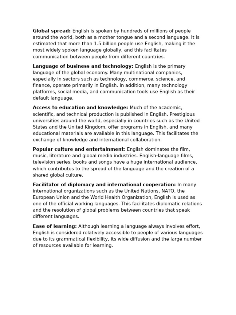 most widely spoken language globally, and this facilitates