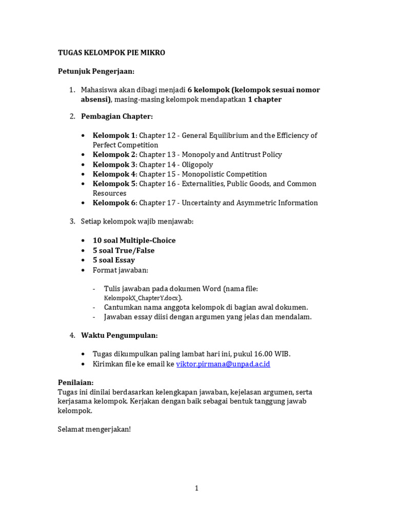 Tugas ini dinilai berdasarkan kelengkapan jawaban, kejelasan argumen, serta
