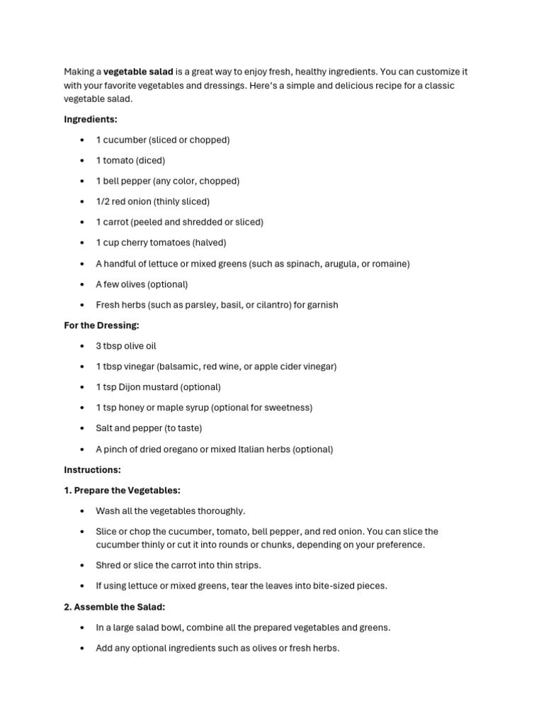 with your favorite vegetables and dressings. Here’s a simple and delicious recipe for a classic