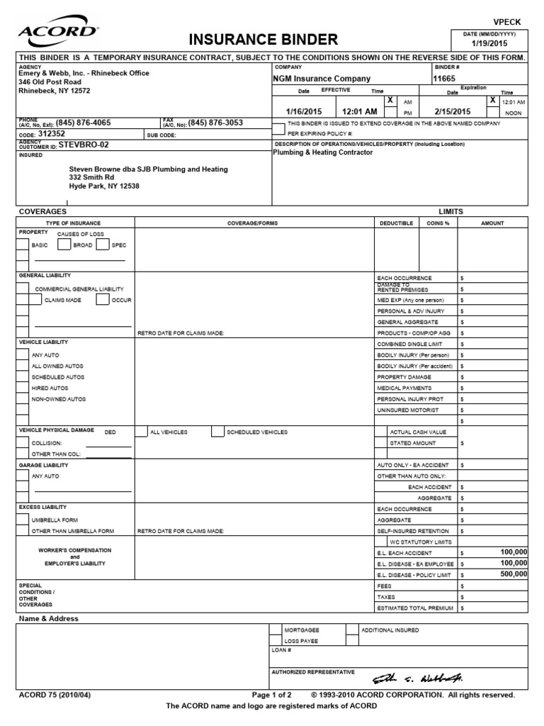 accordance with the policy conditions. This binder is cancelled when replaced by a policy. If this binder is not replaced