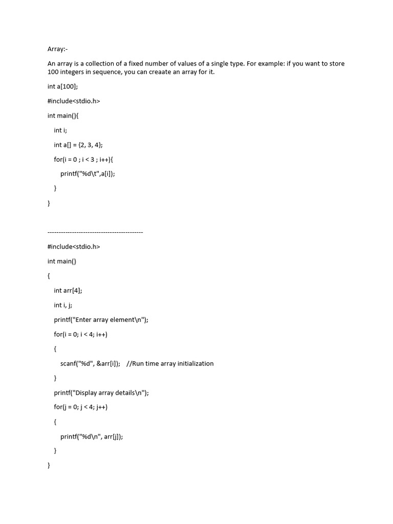 An array is a collection of a fixed number of values of a single type. For example: if you want to store