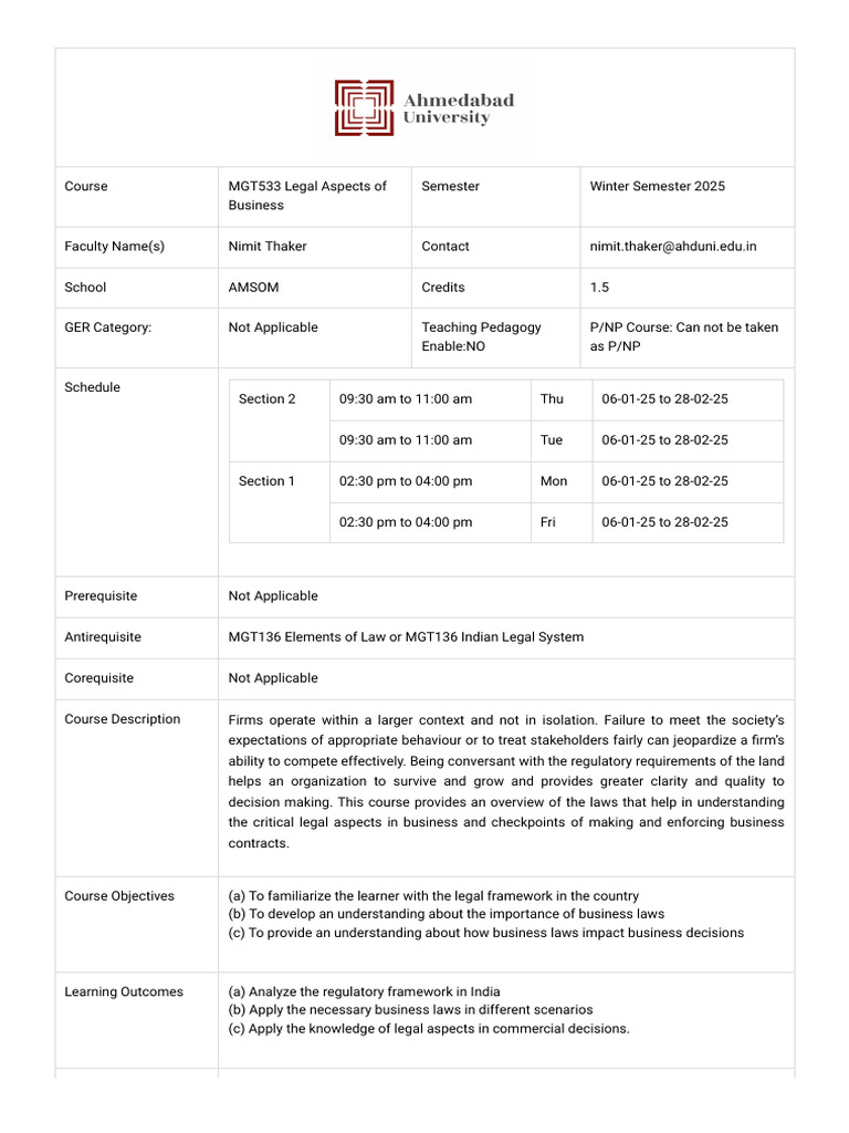 Course MGT533 Legal Aspects of Semester Winter Semester 2025