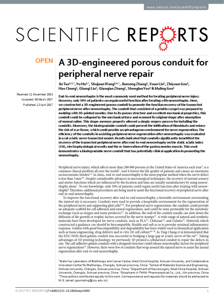 How to cite this article: Tao, J. et al. A 3D-engineered porous conduit for peripheral nerve repair. Sci. Rep. 7,